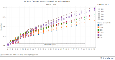 - For each credit grade, interest rates seems to change during the year. As my previous post Lending Club Base Interest Rate - Excess Lending Capital Supply mentions, Lending Club adjusts the interest rates multiple times during the year.