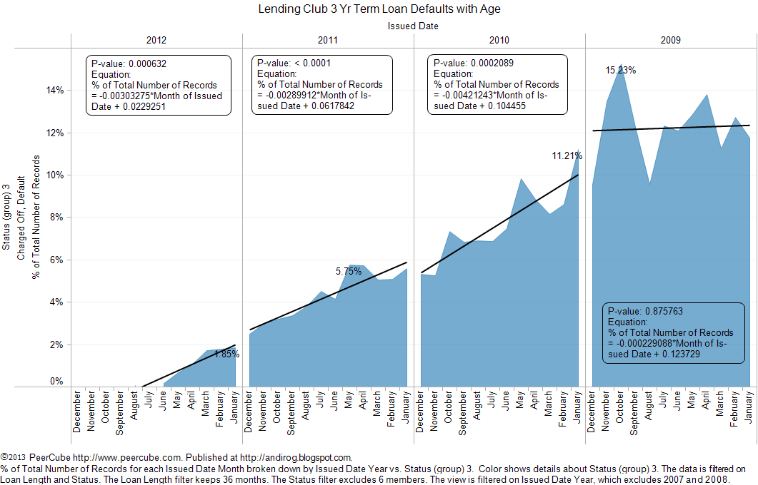 DeleteVery unlikely that winter time increase in default rate was due to LC seeking out less creditworthy borrowers late in the year (most probably you are referring to underwriting changes late 2012). Such defaults will earliest materialize in May of 2013. LC will have to be seeking out low quality borrowers in summer of 2012 or earlier for default rate to increase in wintertime.